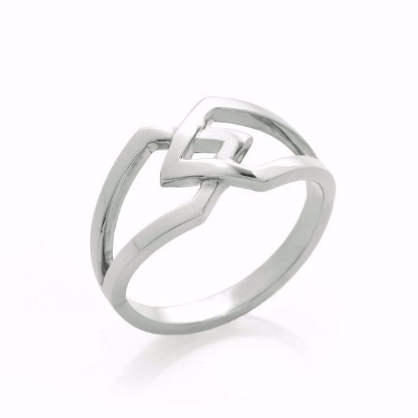 A simple and timeless ring design. The co-existence ring plays with interlocking geometric shapes and feels very balanced with its echoed forms. Handmade in our London Rocks Workshop. This product is also available in our Hatton Garden shop.