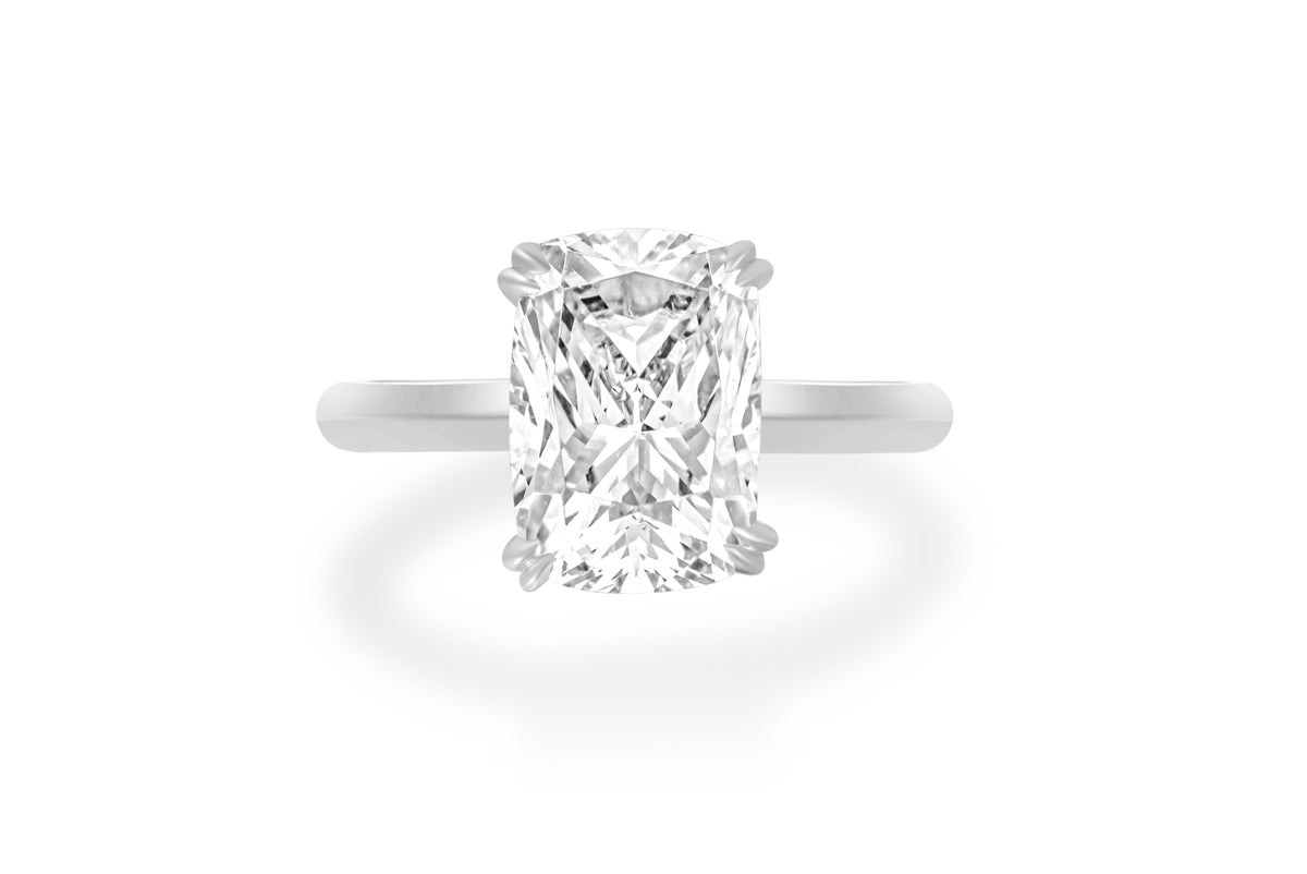At its centre sits a captivating elongated cushion-cut diamond, chosen for its soft contours and exceptional brilliance. The centre stone is secured by refined double talon claws, offering both strength and a bold architectural beauty that enhances the diamond’s natural fire. Set upon a polished band of precious metal, The Ashby balances contemporary design with classic luxury.