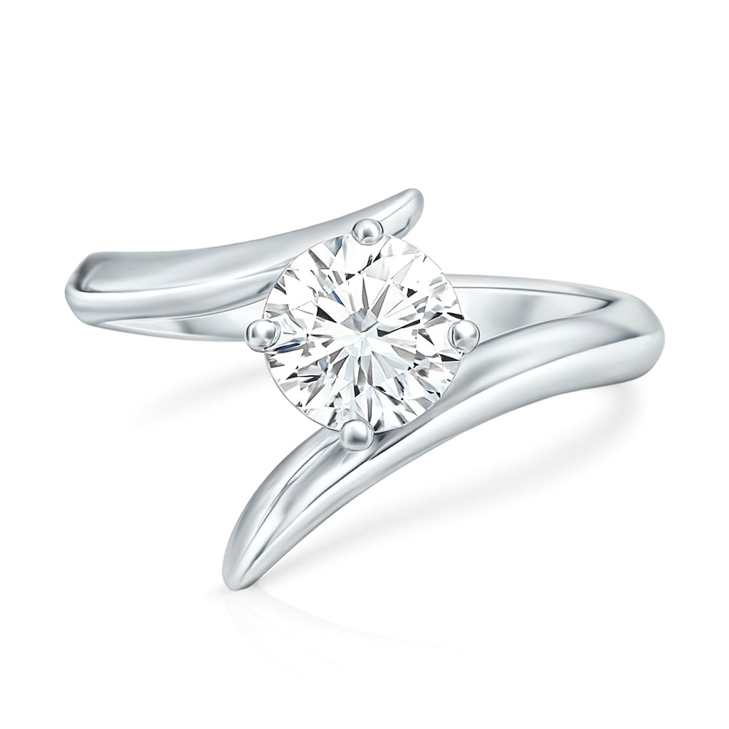At its heart sits a radiant brilliant-cut diamond, renowned for its unmatched fire and sparkle. The centre stone is elevated by a beautifully sweeping warped band, creating a sense of graceful movement as the metal flows effortlessly around the diamond. This sculptural design offers a striking yet refined silhouette, allowing the centre stone to command attention from every angle.